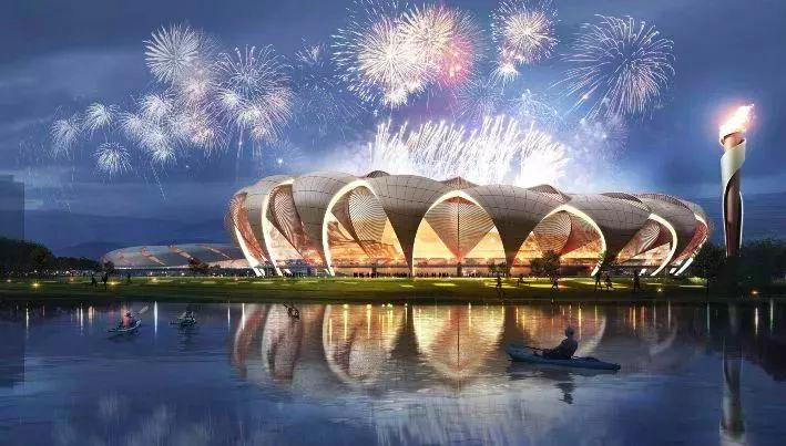 The design of Lanzhou Olympic Sports Center is based on the concept of "Flying Flower Dance". The building and its landscape are like flowers dancing on the Silk Road, with ups and downs and scattered patterns.