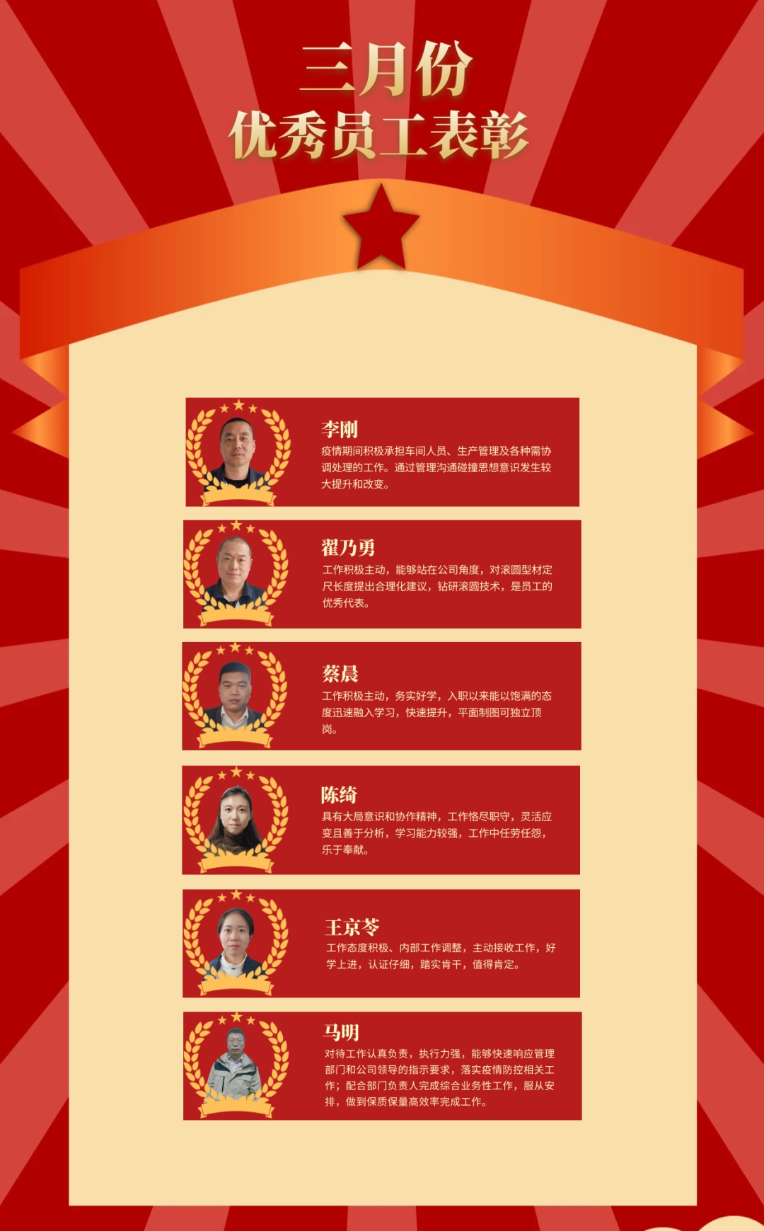 企业的发展离不开每一位伙伴的付出与努力,他们用自己的实际行动为其他员工起到了表率作用,并传递了满满的正能量!
